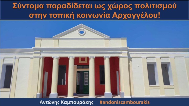 Πρόκειται για ένα εμβληματικό κτήριο που κατασκευάστηκε το 1919, και τους επόμενους μήνες θα παραδοθεί προς χρήση στην τοπική κοινωνία του Αρχαγγέλου, ως χώρος πολιτισμού.
