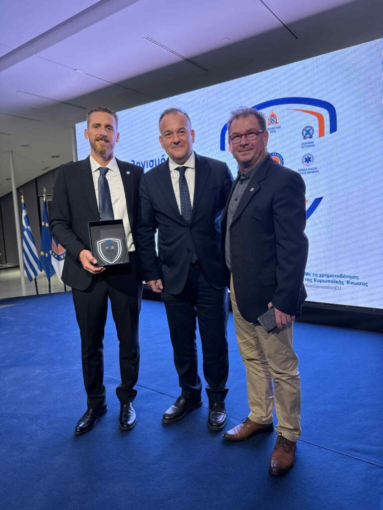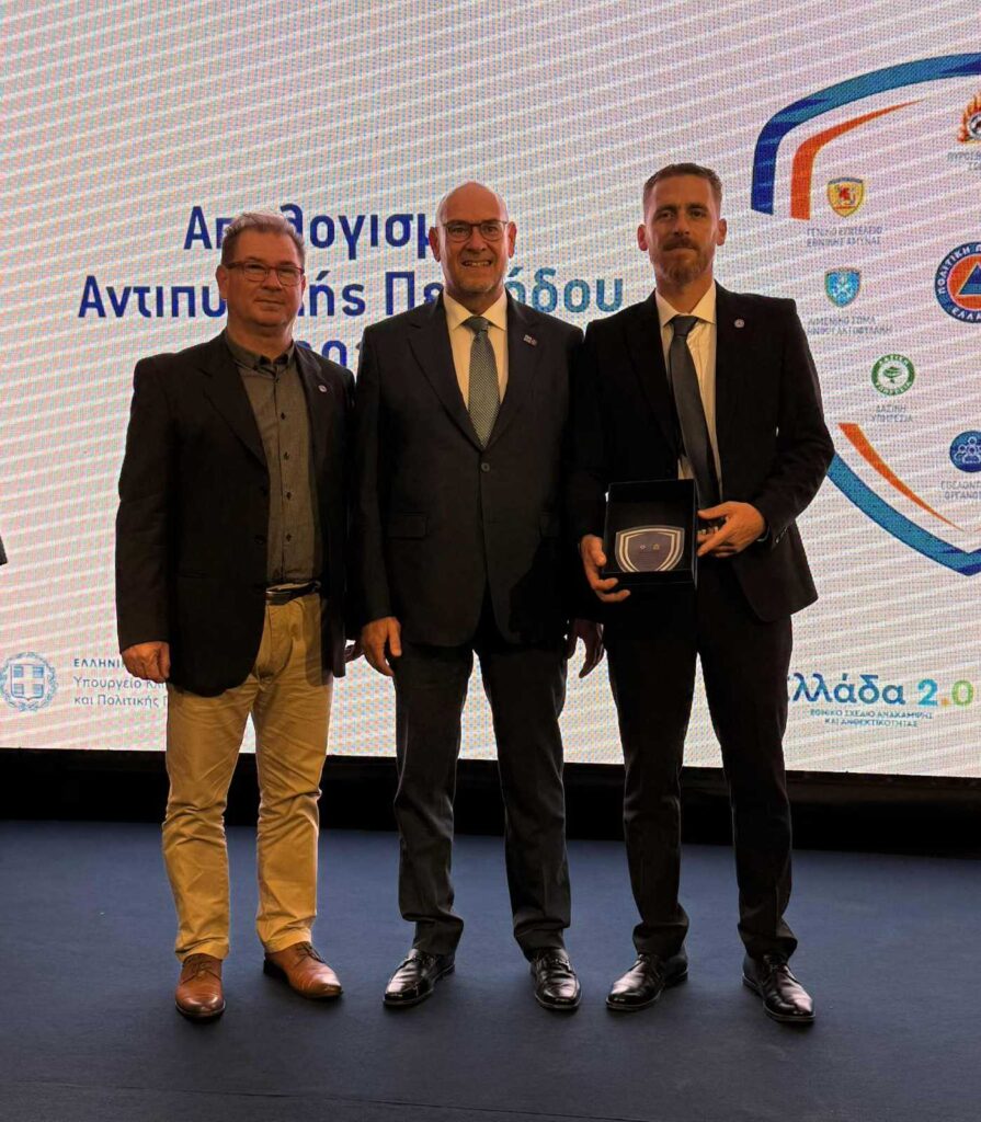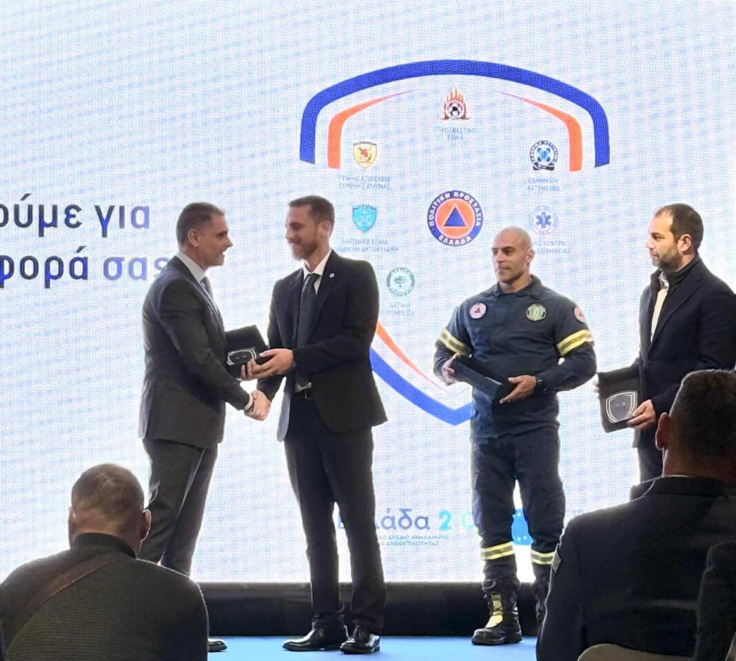 Το βραβείο παρέλαβε ο Αντιδήμαρχος Πολιτικής Προστασίας Μιχάλης Θωμάτος, συνοδευόμενος από τον προϊστάμενο του Αυτοτελούς Γραφείου Μανώλη Κυριακούλη.