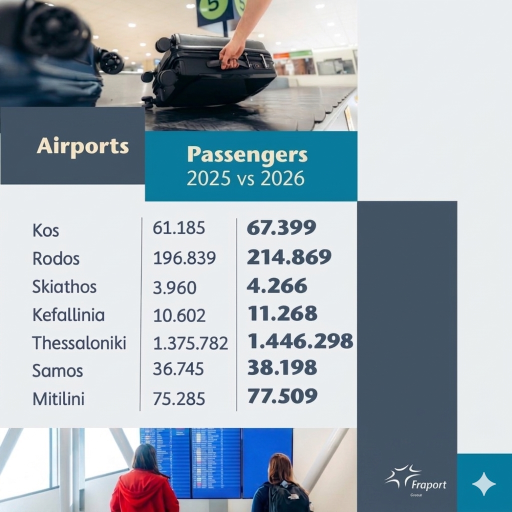 Σε γενικότερο επίπεδο, η κίνηση στα 14 περιφερειακά αεροδρόμια που διαχειρίζεται η εταιρεία κινήθηκε επίσης σε θετικούς ρυθμούς, φτάνοντας συνολικά τους 890.000 επιβάτες για τον Μάρτιο του 2026. Πρόκειται για μια συνολική αύξηση 6,9% σε σχέση με πέρυσι, που αντιστοιχεί σε περίπου 57.000 επιπλέον άτομα.
