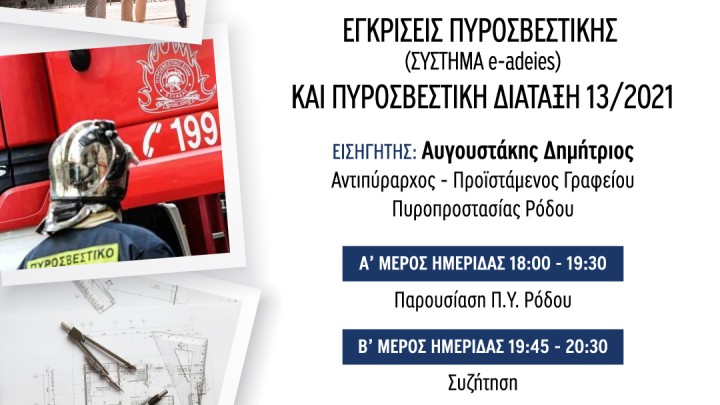 Ημερίδα στο ΤΕΕ Δωδεκανήσου: “Εγκρίσεις πυροσβεστικής (σύστημα e-adeies) και πυροσβεστική διάταξη 13/2021”