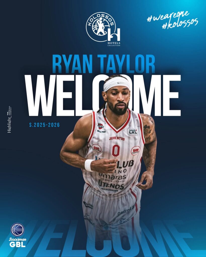 Η ΚΑΕ Κολοσσός H Hotels Collection ανακοινώνει τη συμφωνία της με τον Ράιαν Τέιλορ.