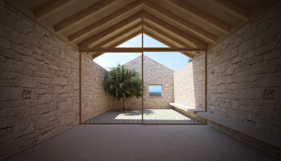 «Αποφασίσαμε να διατηρήσουμε το αρχικό κέλυφος του αχυρώνα και να το μετατρέψουμε σε μια εσωστρεφή δομή που θα φιλοξενεί όλες τις δημόσιες λειτουργίες που γίνονται τόσο στον εσωτερικό όσο και στον εξωτερικό χώρο. Στόχος μας ήταν να δημιουργήσουμε έναν γαλήνιο, συνεχή χώρο που θα τονίζει τη γραμμικότητα της παλιάς δομής, πλαισιώνοντας συγκεκριμένες όψεις του μεσογειακού τοπίου. Η στέγη υποχωρεί και συρρικνώνεται στο υπάρχον κτίσμα, δημιουργώντας δύο υπαίθριους χώρους μέσα στο πέτρινο κέλυφος του παλιού στάβλου», λένε οι P4architecture.