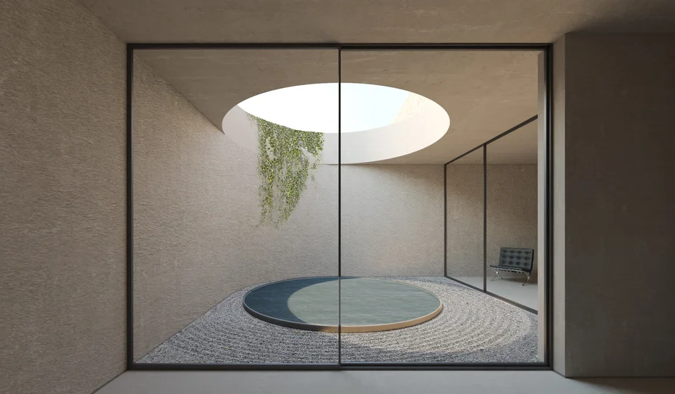 Ένας κύκλος φωτίζει το αίθριο του υπογείου, αλλά και τα δωμάτια που βρίσκονται κάτω από τη γη