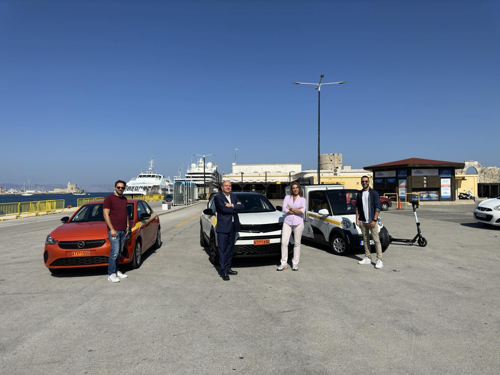 (Αυτά είναι τα αμιγώς ηλεκτρικά οχήματα του ΙΜΕΤ στο νησί της Ροδου.)