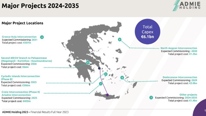 Το 2029 και το 2030 αντίστοιχα αναμένεται να ολοκληρωθούν οι διασυνδέσεις των Δωδεκανήσων και των νησιών του ΒΑ Αιγαίου, έργα συνολικού προϋπολογισμού 3,2 δισ. ευρώ.