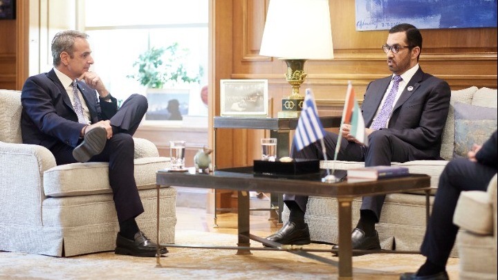 Στην αρχή της συνάντησης ο Κυριάκος Μητσοτάκης και ο Δρ. Σουλτάν Αλ Τζάμπερ είχαν τον εξής διάλογο: