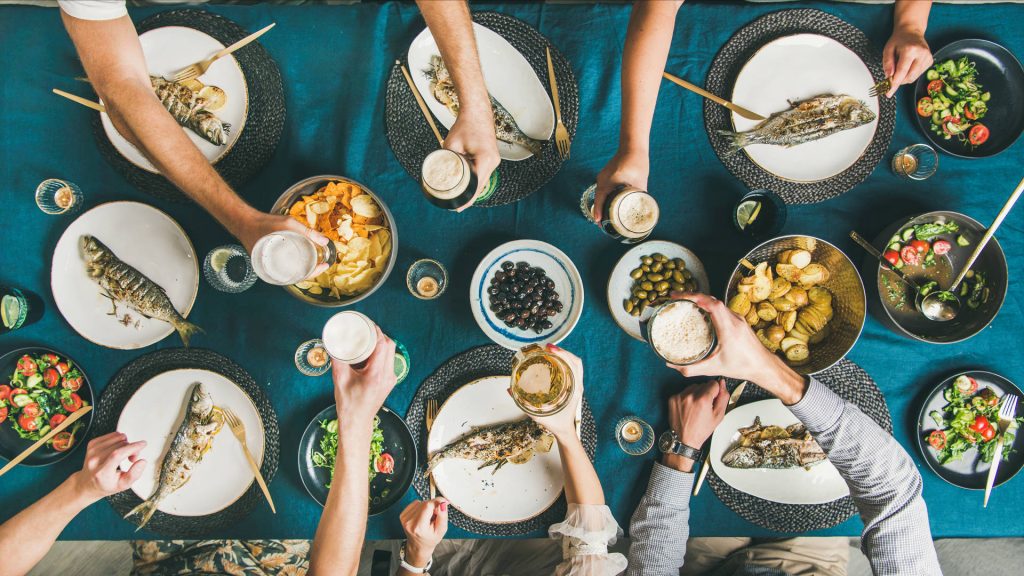 Εκεί βέβαια που η μπίρα «δίνει τα ρέστα της» είναι σε συνδυασμό με αμυλούχες τροφές. Αγκαλιάζονται με τρυφερότητα σαν συγγενείς (η κοινή μητέρα, η μαγιά, βλέπετε) που χαίρονται να είναι μαζί. Μη διστάσετε λοιπόν να σερβίρετε μπίρες με τυρόψωμα, πίτσες, ελιόψωμα, αλευρόπιτες ζαγορίσιες και βέβαια με κάθε είδους πάστα, όπου βέβαια το είδος της μπίρας θα καθοριστεί από τη σάλτσα. Οι σκουρόχρωμες stout μπίρες θα συνοδεύσουν θαυμάσια τα ψητά σας, είτε κοψίδια είτε καλοκαιρινά λαχανικά, όπως μελιτζάνες, κολοκύθια, πιπεριές. Οι φίλοι Ιρλανδοί συνιστούν τις δυνατές stout ως συνοδούς σε όστρακα, στρείδια κ.λπ. Αυτός είναι ένας πολύ ιδιαίτερος συνδυασμός, που είτε θα λατρέψετε είτε θα σιχαθείτε. Δοκιμάστε ωστόσο!