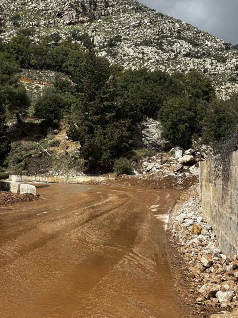 Η κυκλοφορία αποκαταστάθηκε από συνεργεία της Περιφέρειας Νοτίου Αιγαίου μετά την κατολίσθηση που σημειώθηκε χθες