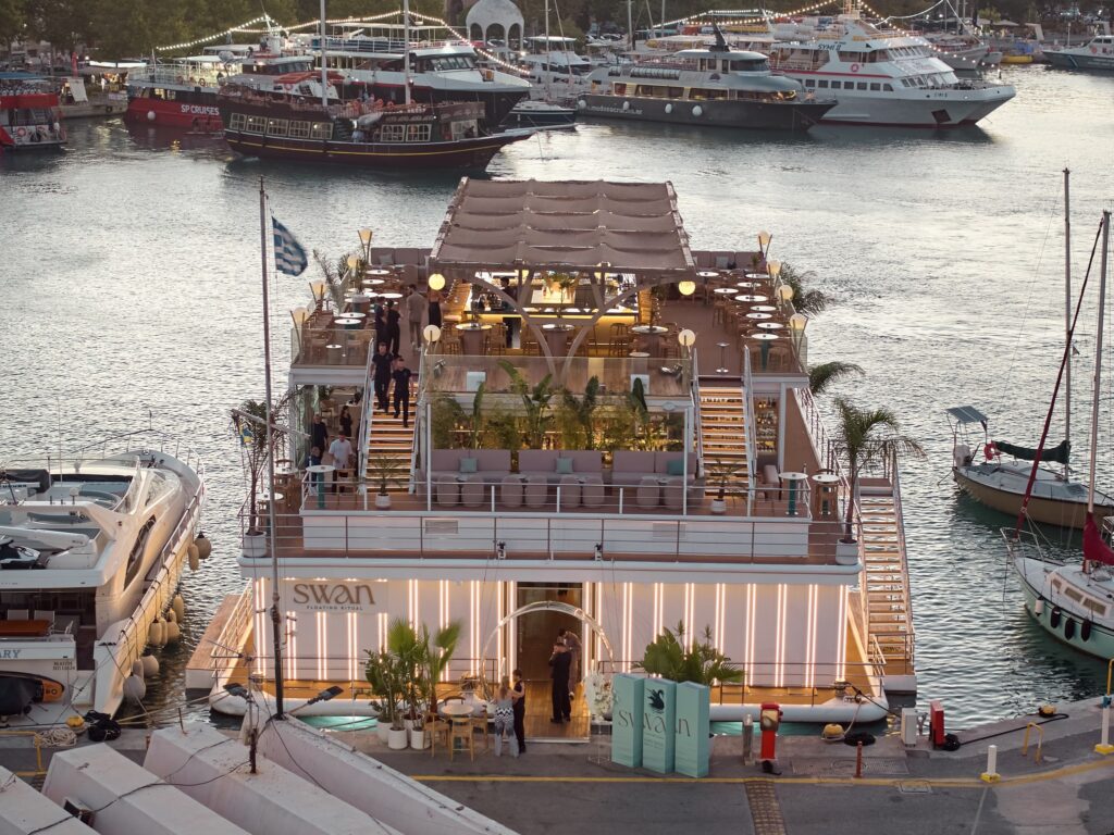 Το Swan έχει γίνει ήδη γίνει talk of the town και είναι θέμα χρόνου να εξελιχθεί σε σημείο αναφοράς για ολόκληρη την Ελλάδα και την Ευρώπη, αναβαθμίζοντας παράλληλα την εικόνα της Ρόδου ως κορυφαίου προορισμού για εκλεπτυσμένες επιλογές διασκέδασης. Μυεί τους θαμώνες σε ένα μοναδικό floating ritual, που ανατρέπει τα όρια της παραδοσιακής απόδρασης, προσκαλώντας τους σε ένα ταξίδι γεύσεων, εξεζητημένης απόλαυσης και κομψότητας πάνω στη θάλασσα.